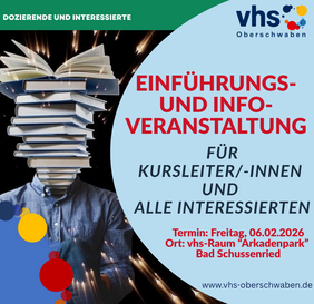 Diese Veranstaltung richtet sich sowohl an Personen, die gerne in unser Team der vhs Oberschwaben kommen möchten, als auch an bereits tätige Dozent/-innen, die sich weiter austauschen und informieren möchten.